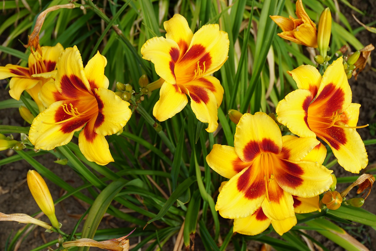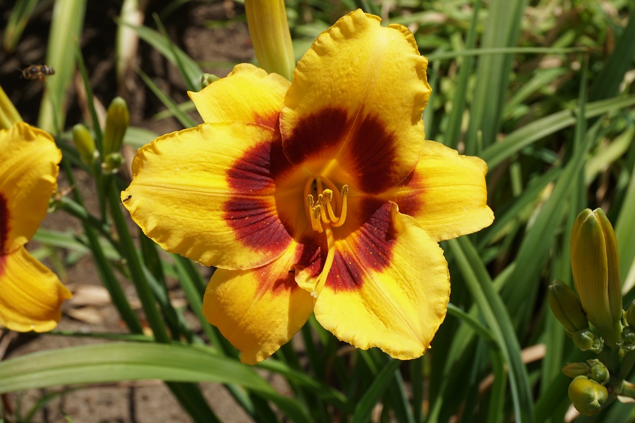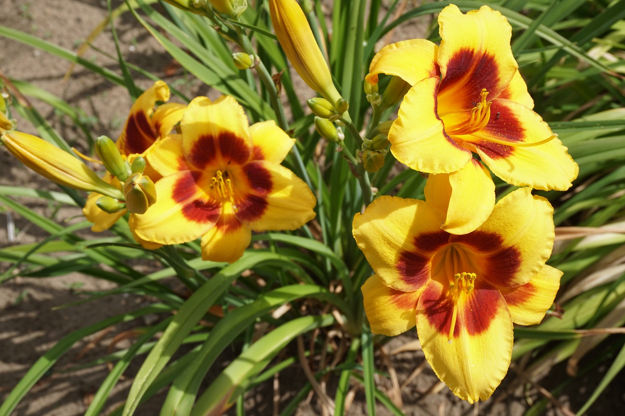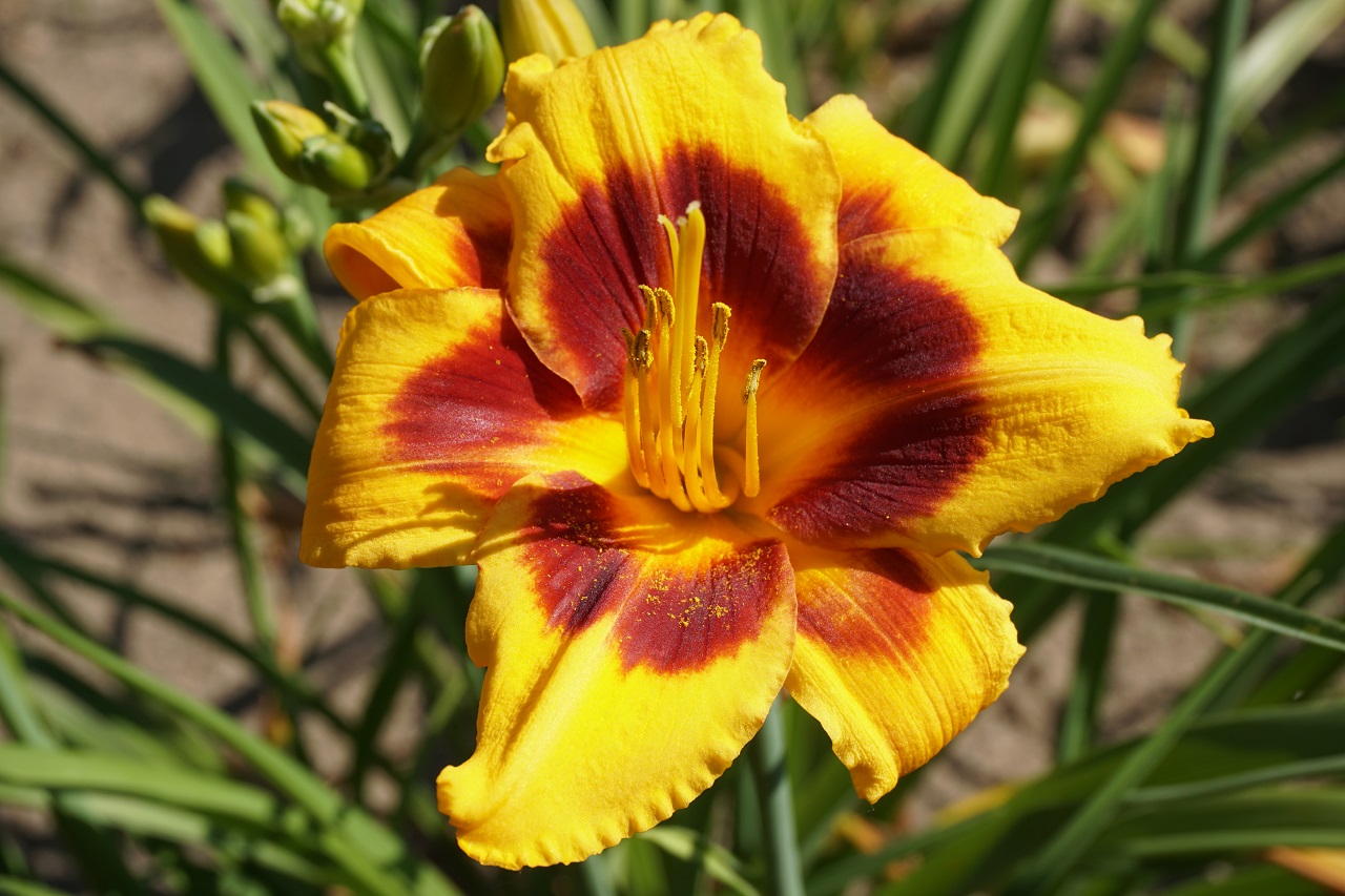 Kolor kwiatu: Maślany żółty z czerwono-fioletową strefą oczu