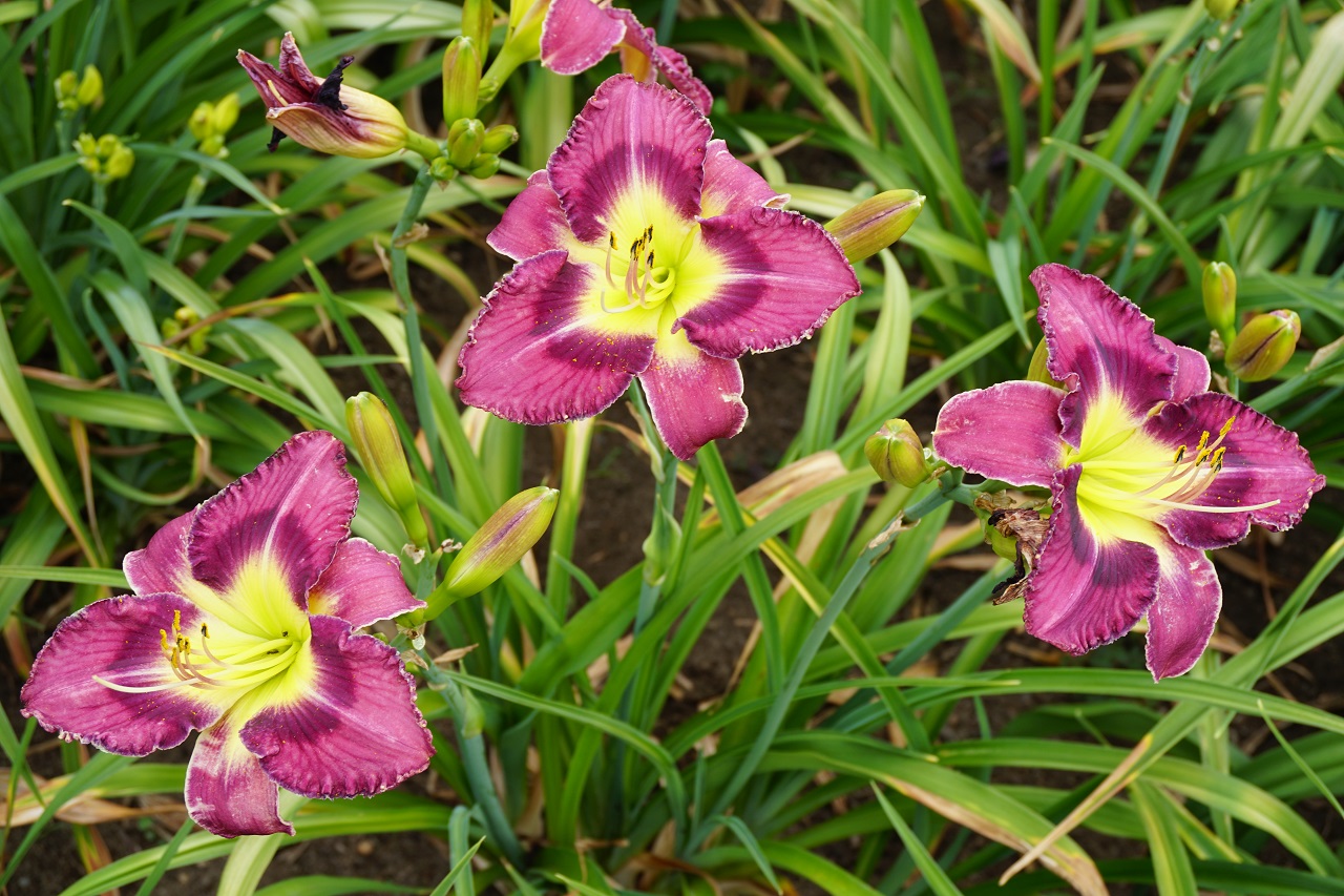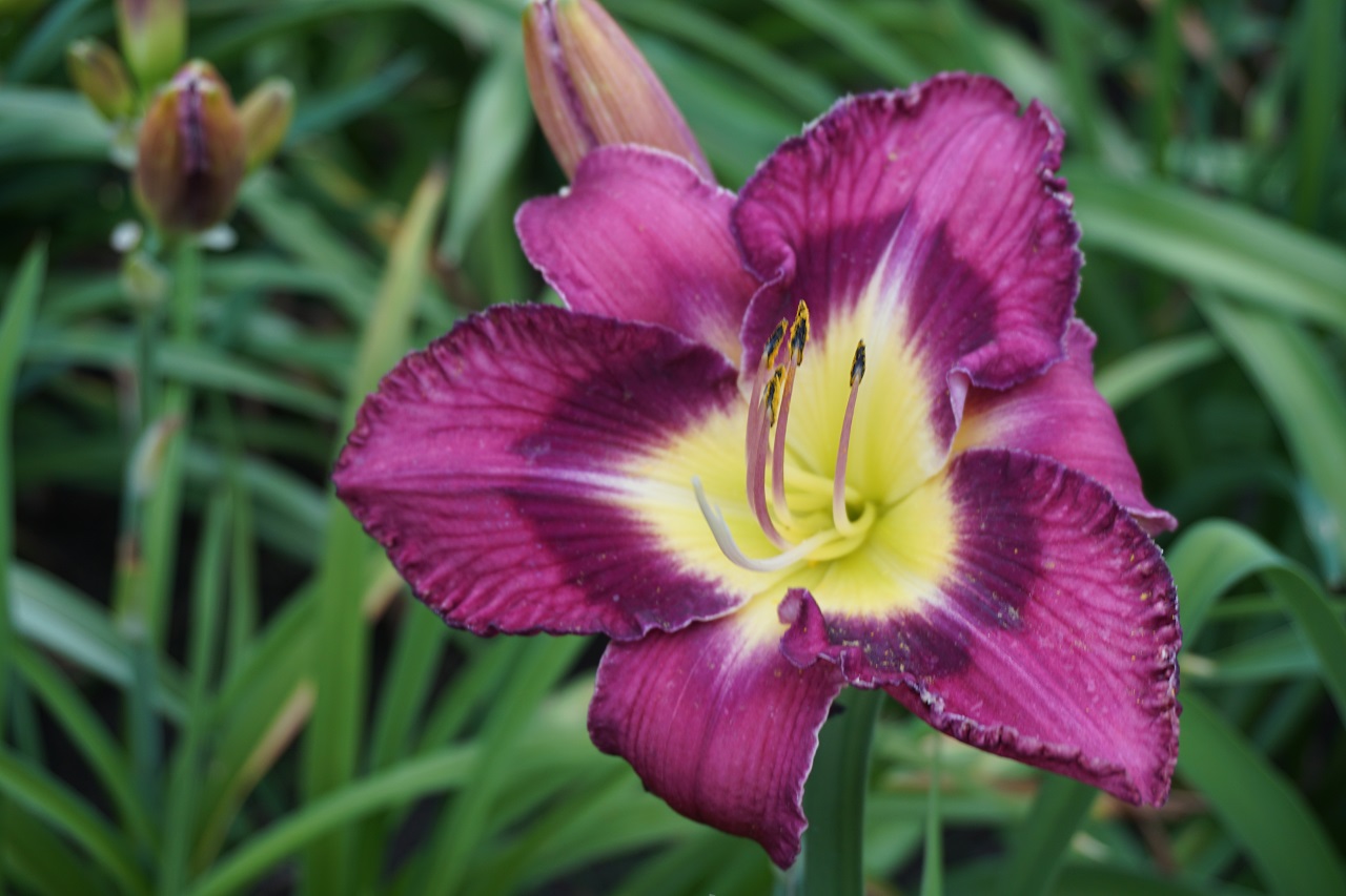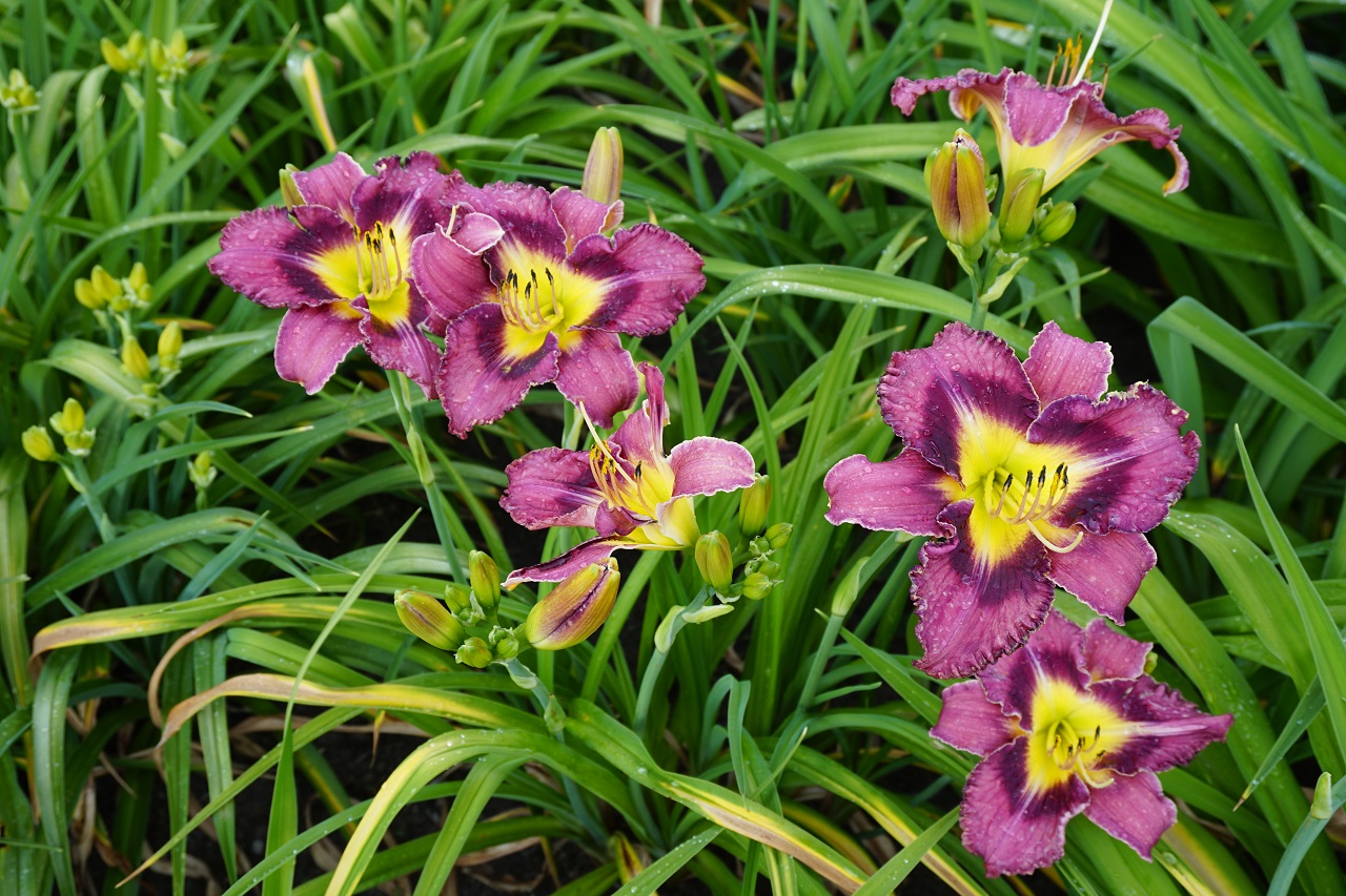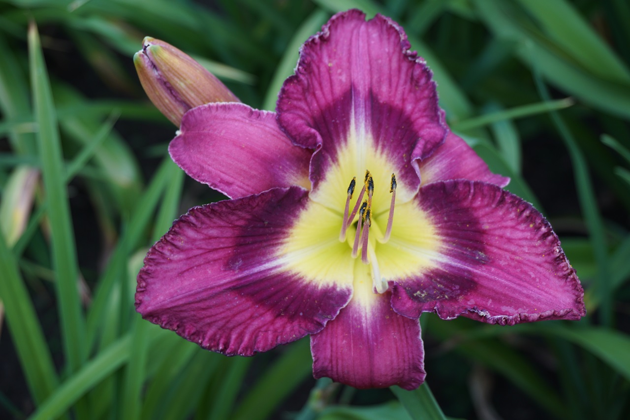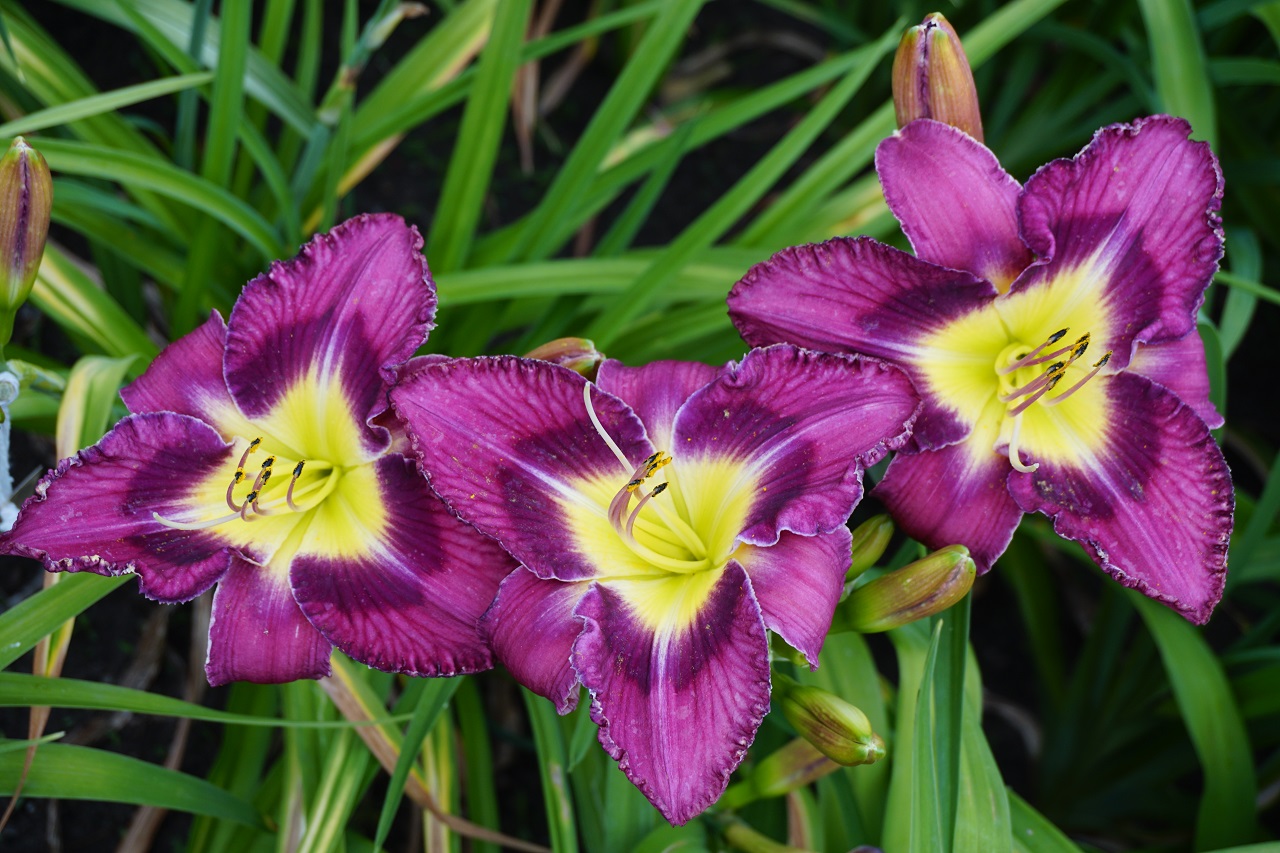 Kolor kwiatu: Lawendowy fiolet z ciemniejszym okiem i szeroką, trójkątną złotą szyjką