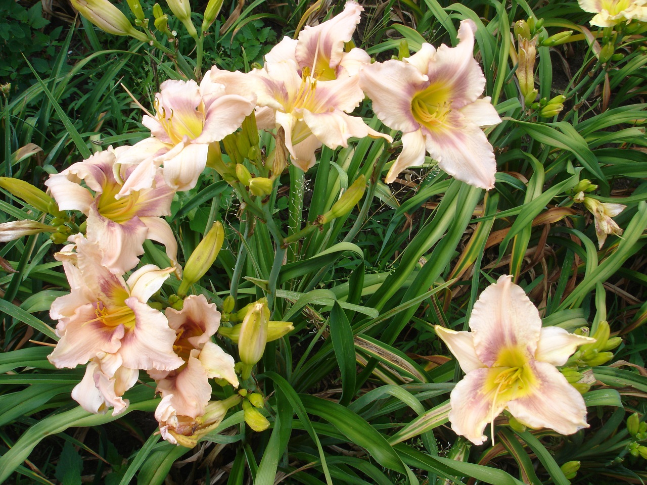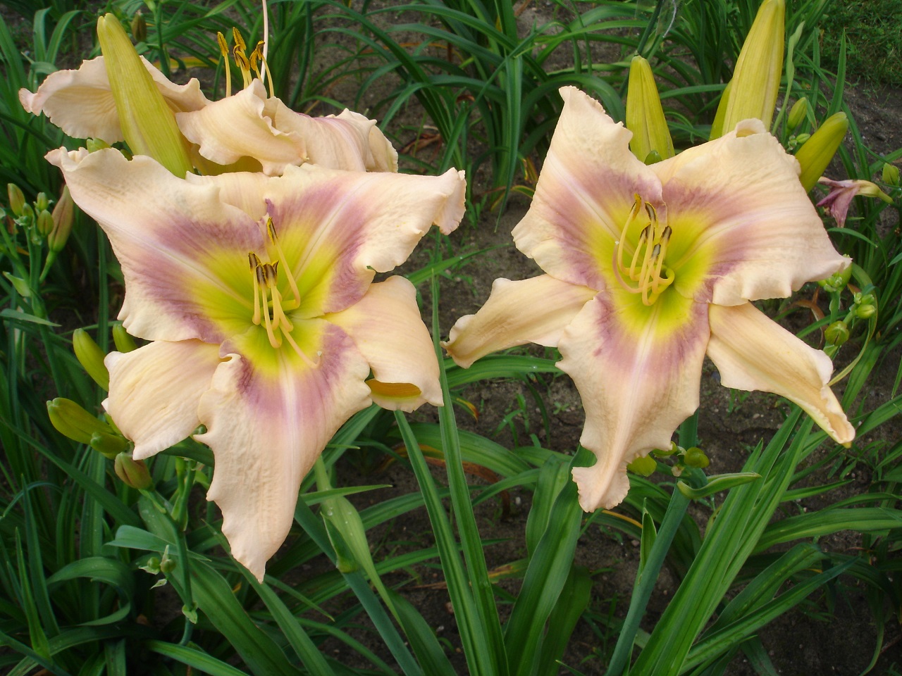 Kolor kwiatu: Kremowo-różowy z liliowymi oczami i falbanami nad zielonym gardłem