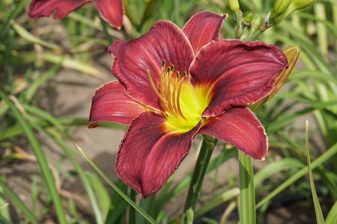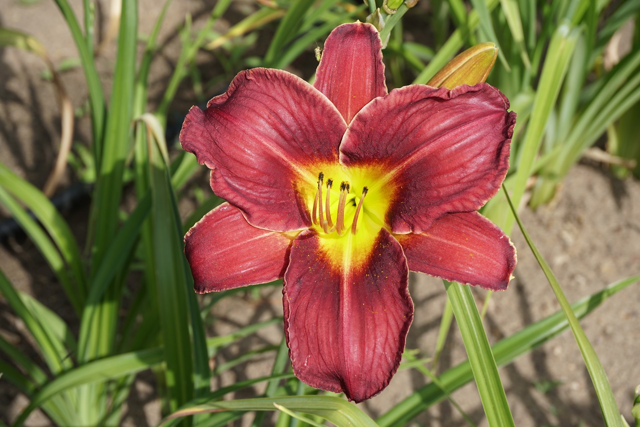 Kolor kwiatu: Szkarłatny czerwony z żółtym gardłem